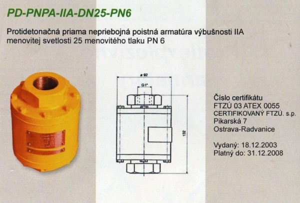 Úvod > Komponenty k ČS > Protiexplozivní plamenopojistky > PD-PNPA-IIA-DN25-PN6