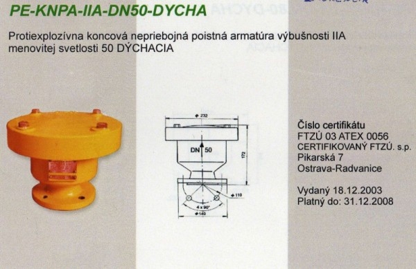 Úvod > Komponenty k ČS > Protiexplozivní plamenopojistky > PE-KNPA-IIA-DN50-DYCHA
